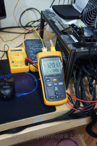 Suplai daya yang continuous dan stabil menjadi kebutuhan utama seorang overclocker. Meskipun agak jarang, tapi kami pernah melihat bahwa perbedaan kualitas PSU dapat menghasilkan perbedaan pencapaian clockspeed pada hardware tertentu. Karena itu, kami mempercayakan semua sistem kami kepada PSU Corsair AX1200 (yang selama ini juga kami gunakan sebagai testbed review VGA dan lab overclocking).
