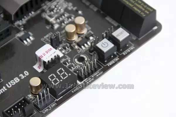 ASRock menyediakan tombol power on/off dan reset untuk memudahkan pengoperasian motherboard di luar casing. Tersedia pula Debug LED 2-digit untuk memudahkan diagnosa masalah pada sistem.