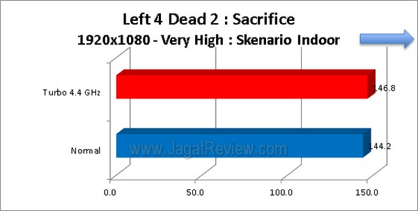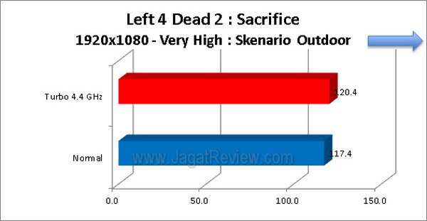 Left 4 Dead 2 merupakan salah satu game bergenre First Person Shooter yang cukup populer maka merupakan langkah yang tepat kami menggunakan game ini sebagai salah satu benchmark. Pengujian dilakukan dalam dua skenario yaitu skenario indoor dan outdoor. Skenario indoor lebih bergantung kepada kinerja prosesor sedangkan skenario outdoor bergantung sekali kepada kinerja GPU.