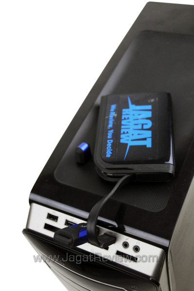 Pada sisi atas casing terdapat cekungan untuk meletakkan perangkat seperti storage, smartphone, dan lainnya.