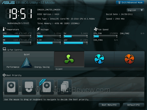 Penampilan UEFI BIOS ASUS Essentio CM6630 ternyata tidak jauh berbeda dengan UEFI BIOS motherboard ASUS lainnya. Pilihan setting BIOS yang diberikan tergolong lengkap tetapi tetap mempertahankan kemudahan dan kecepatan mengakses menu BIOS. ASUS menyertakan tiga profile pada BIOS yaitu Silent, Standard, dan Turbo dimana profile ini berpengaruh kepada kecepatan kipas pada sistem.