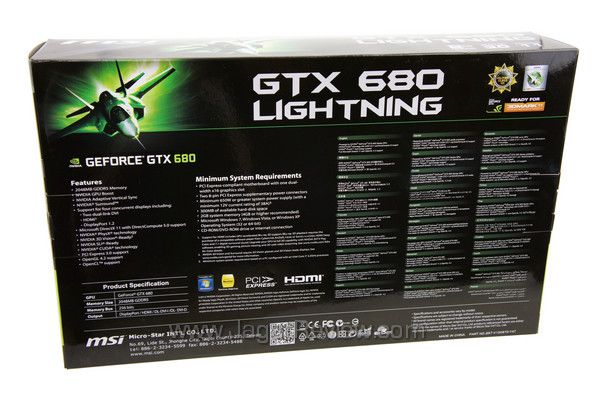 Desain kemasan produk MSI GTX 680 Lightning memang identik dengan MSI HD 7970 Lightning kecuali pada penggunaan warna hijau yang mewakili warna khas NVIDIA.
