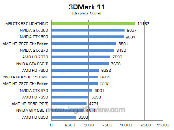 MSI GTX 680 Lightning menawarkan performa sekitar 7% lebih kencang dibandingkan GTX 680 reference pada benchmark sintesis DirectX 10 ini.