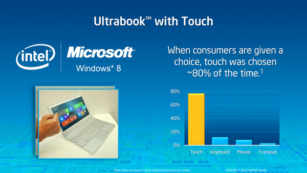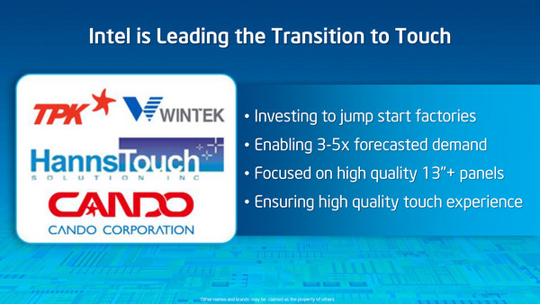Untuk mendorong pertumbuhan Ultrabook Convertible, Intel melakukan investasi untuk memproduksi lebih banyak panel layar touchscreen terutama pada ukuran 13”. Dengan jumlah produksi semakin tinggi diharapkan harga panel semakin murah sehingga harga Ultrabook Convertible dapat ditekan serendah mungkin.
