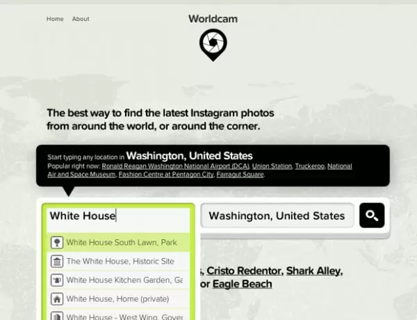 Worldcam adalah sebuah aplikasi yang mengumpulkan photo stream dari Instagram menggunakan dua buah patokan lokasi. Lokasinya bisa dimana saja, bahkan lokasi-lokasi yang tidak umum. Mulai dari markas besar perusahaan-perusahaan besar seperti Apple atau pun lokasi wisata seperti Tembok Besar Cina. Hebatnya lagi adalah semua photo ini merupakan photo live karena gambar-gambar tersebut diambil stream Instagram yang terbaru.