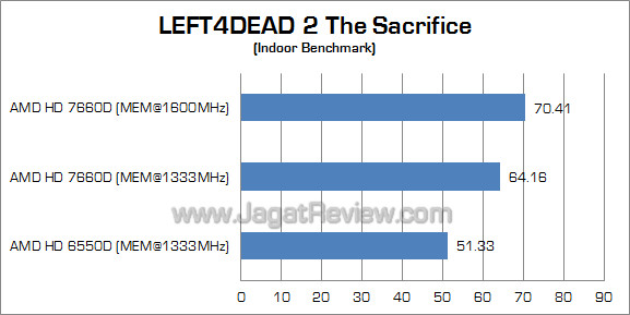Engine Source tampaknya tergolong ringan bagi HD 7660D. Untuk game dengan engine seperti ini, HD 7660D sepertinya masih bisa mendapatkan frame rate cukup tinggi meskipun setting resolusi gambar maupun kualitas grafik ditingkatkan. HD 7660D sendiri menorehkan performa 24% lebih kencang di atas HD 6550D dan performa tersebut masih dapat naik sekitar 9% saat kami naikkan kecepatan memori ke 1600 MHz.