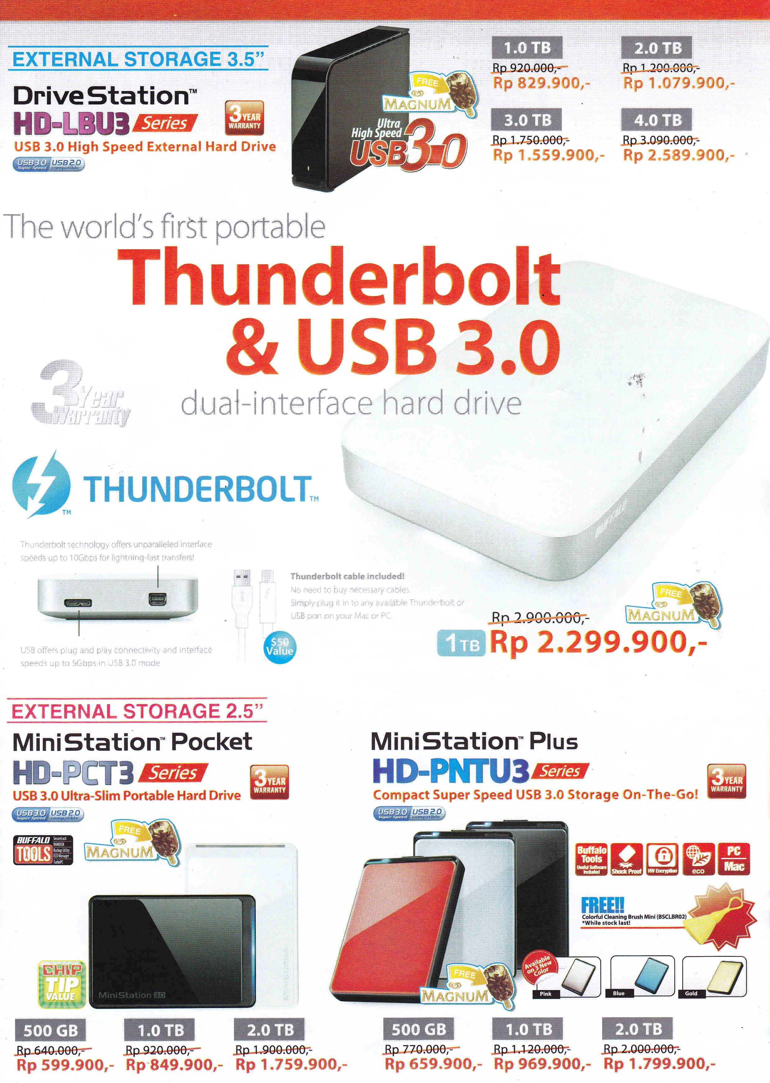- Thunderbolt USB 3.0 1 TB: Rp 2.900.000,- menjadi Rp 2.299.000,-
