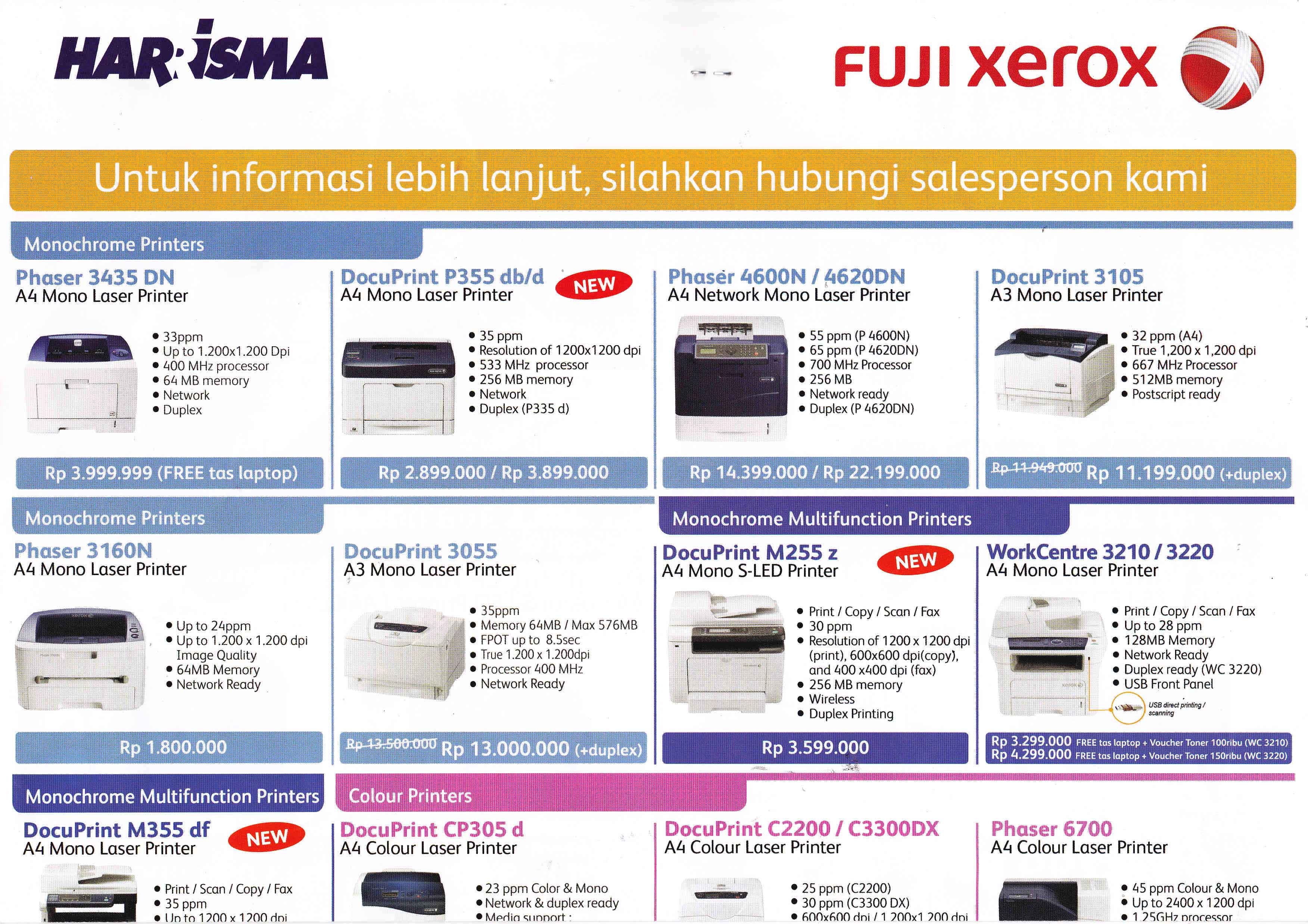 - DocuPrint 3055: Rp 13.500.000,- menjadi Rp 13.000.000,-