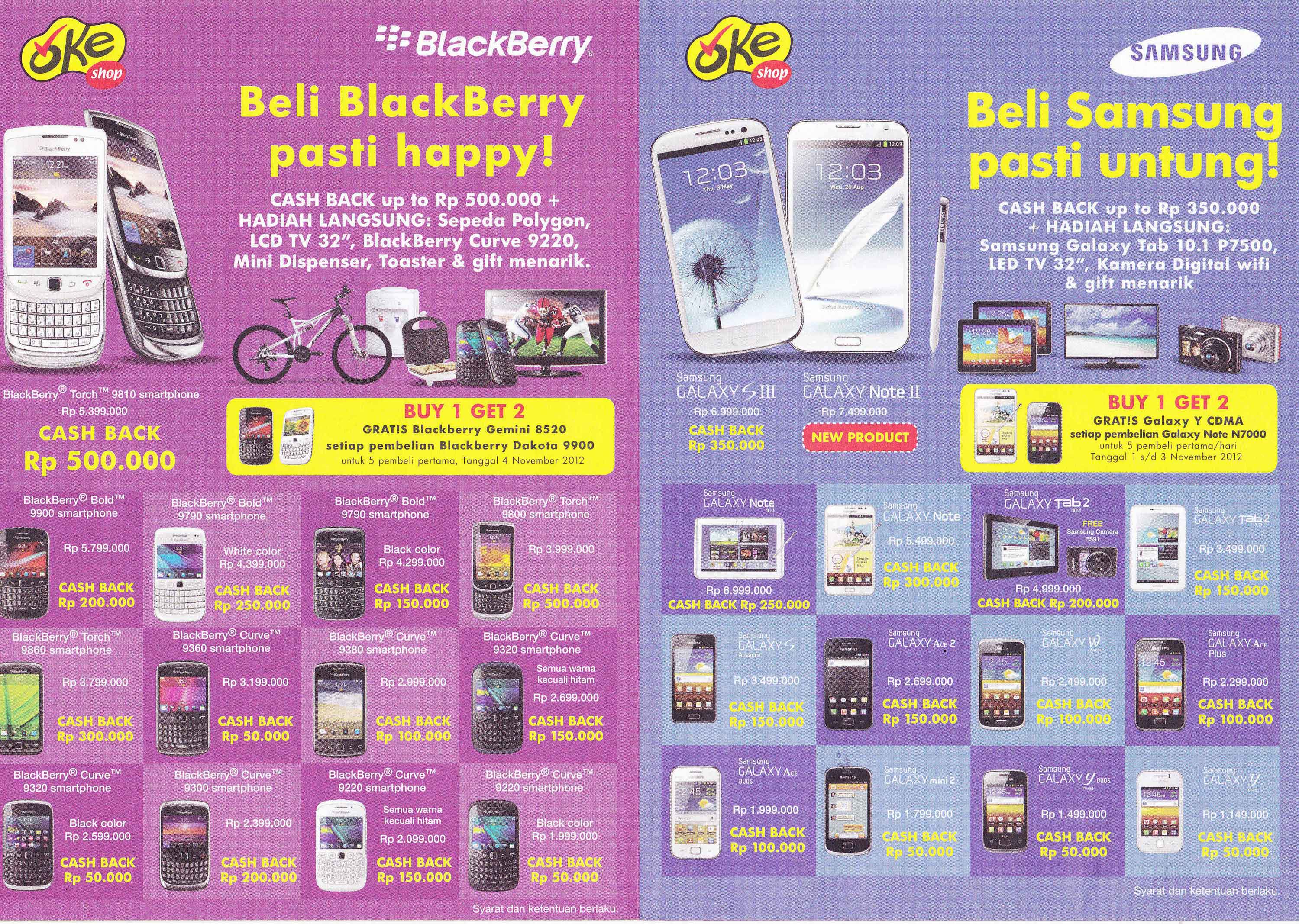 - Sasmung Galaxy Ace: Rp 1.999.000,- (Cashback Rp 100.000,-)
