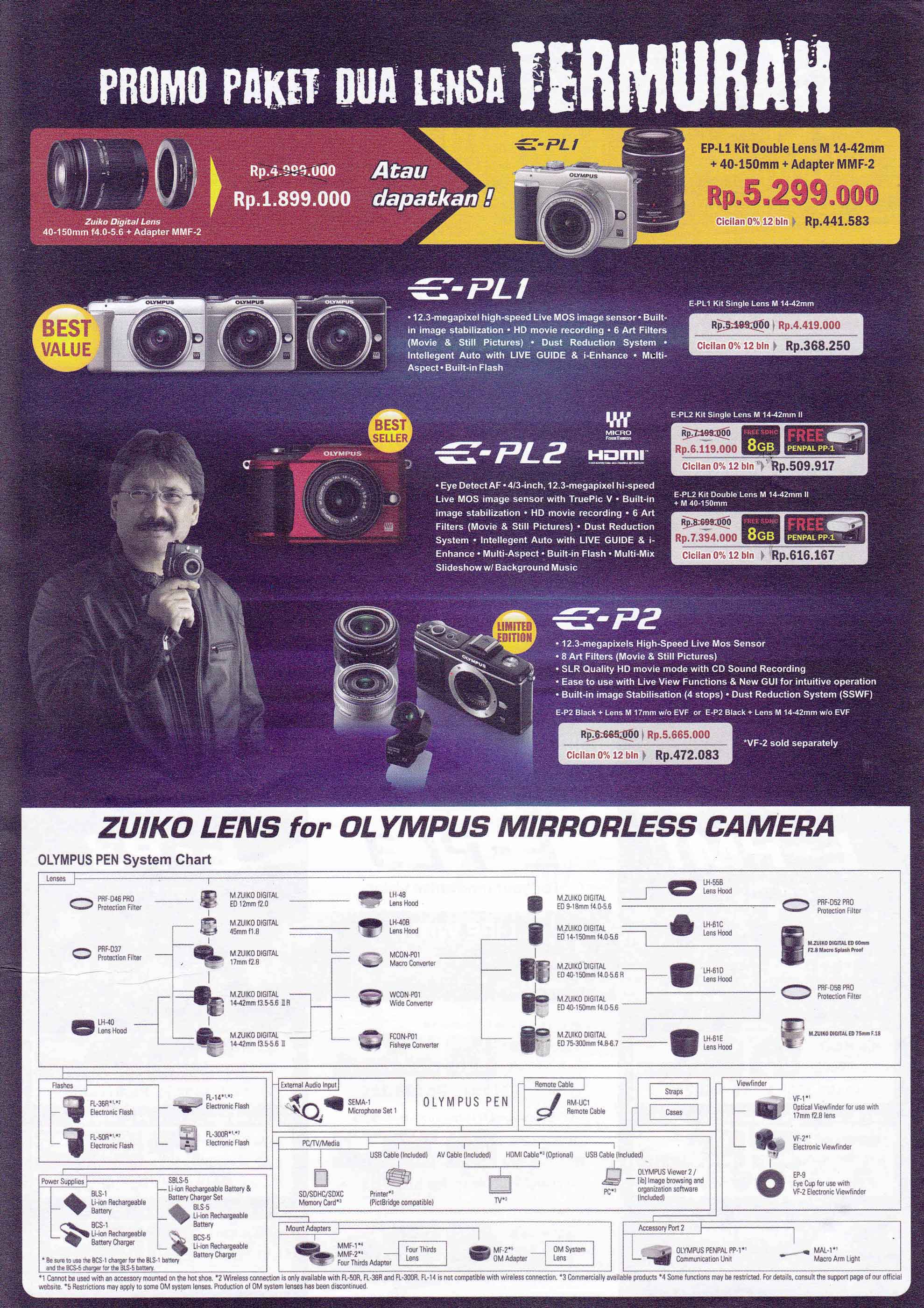 E-PL2 Kit Single Lens M 14-42mm: Rp 7.199.000,- menjadi Rp 6.199.000,- (Free SDHC 8 GB + Free Penpal PP-1)