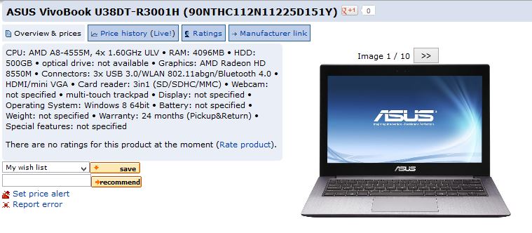 Masih dari source yang sama, disebutkan juga sebuah notebook ASUS Vivobook U38T pada tabel spesifikasinya sudah dilengkapi dengan GPU dicrete Radeon HD 8550M, dan terintegrasi juga dengan Radeon HD 7600G yang terdapat pada prosesor Trinity APU A8-4555M. Sama seperti GeForce GT 730M, Radeon HD 8550M ini juga memiliki kemungkinan sebagai GPU rebrand dari Radeon HD 7550M sebelumnya, atau mungkin juga GPU didalam notebook ini sudah menggunakan arsitektur GPU GCN 28nm terbaru dengan kode nama Mars/Oland.