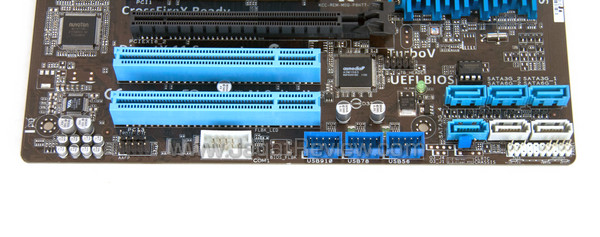 Motherboard ini mendukung konfigurasi multi-GPU CrossfireX, minus SLI. Cukup disayangkan pada saat menjalankan konfigurasi multi-GPU, graphics card kedua hanya berjalan pada PCIe berkecepatan x4. Pada konfigurasi multi-GPU biasanya graphics card kedua berjalan pada kecepatan x8. Hal ini berakibat pada berkurangnya bandwidth yang tersedia untuk graphics card. Meskipun begitu hal ini bukan menjadi masalah jika Anda hanya menggunakan satu buah graphics card. ASUS tidak lupa menyertakan 3 buah slot PCI untuk mengakomodir expansion card lawas.