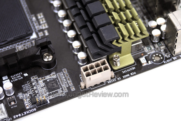 Di sisi kiri soket prosesor AM3+, berbaris rapi komponen ferrite choke dan solid capacitor. ASUS menggunakan konfigurasi VRM 8+2 Digital Phase Power Design. Untuk menjaga temperatur komponen pada batas normal, ASUS menggunakan heatsink pasif berlapis bahan kemarik. Sedangkan di sisi bawah soket prosesor adalah chipset northbridge AMD 990FX dengan heatsink pasif berlapis bahan keramik di atasnya. Heatsink northbridge dan VRM terhubung oleh sebuah heatpipe. ASUS Sabertooth 990FX dilengkapi sebuah konektor daya 8-pin untuk menjamin kecukupan asupan daya ke prosesor terutama saat melakukan overclocking. ASUS Sabertooth 990FX menyediakan 4 buah slot memori DDR3. Dukungan kapasitas dan kecepatan maksimal memori adalah 32 GB dan 1866 MHz. Di sudut kanan motherboard terdapat tombol MemOK!. Feature ini memungkinkan sistem dapat hidup dengan normal meskipun menggunakan memori yang belum dikenali oleh motherboard. Seperti halnya chipset northbrigde, chipset southbridge SB950 juga dilengkapi heatsink pasif berlapis bahan keramik untuk menjaga temperatur pada batas normal.