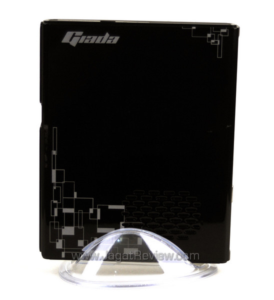 Giada Mini PC i53 tampil elegan dengan balutan warna hitam mengilap dan sebuah garis krom di bagian depan. Selain hitam, Giada Mini PC i53 juga tersedia dalam warna putih dan biru. Pada garis krom ini terdapat sebuah tombol power dan 3 buah lampu activity-LED. Ukuran keseluruhan sistem ini adalah sebesar 19,2 (panjang) x 15,5 (lebar) x 2,6 (tebal) cm. Giada juga menyediakan sebuah clear-stand untuk menggunakan sistem ini pada posisi berdiri.
