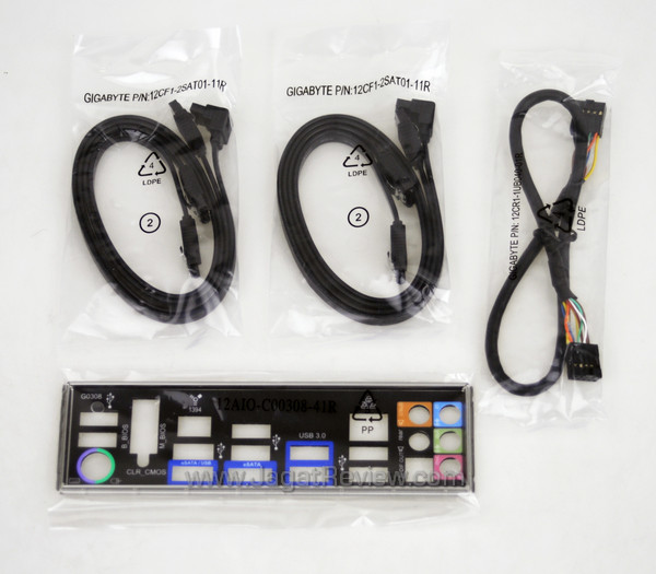 Setumpuk perlengkapan disertakan oleh Gigabyte untuk memanjakan pengguna yang membeli produk ini. Beberapa di antaranya adalah: