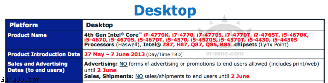 Intel Haswell, Detail Terbaru Mengenai Varian dan Waktu Rilis