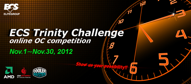 Meski terkenal dengan motherboard seri value-nya, ECS tidak mau kalah dengan vendor motherboard lainnya dalam hal mengadakan kompetisi overclocking online. Baru-baru ini, ECS bekerjasama dengan website hardware & overclocking Hwbot.org dalam mengadakan sebuah kontes overclocking online yang bernama ECS Trinity Challenge.