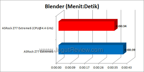 Blender merupakan aplikasi “open source” untuk 3D-modelling. Kami menguji kinerja prosesor dalam merender objek 3D di aplikasi ini. Hasil pengujian disajikan dalam satuan waktu. Semakin sedikit waktu yang dibutuhkan, semakin baik.