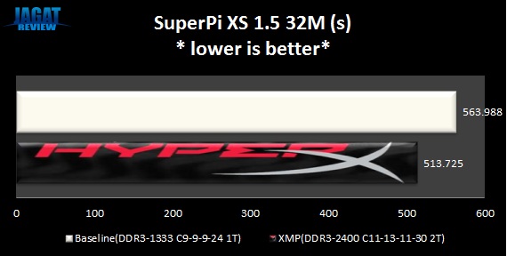 SuperPI adalah satu dari beberapa benchmark favorit para overclocker. Benchmark single-thread ini selain dipengaruhi oleh clockspeed CPU yang digunakan, juga dipengaruhi oleh kecepatan sub-sistem memori Anda. Sistem yang memiliki CPU clockspeed sama bisa memiliki hasil yang berbeda jika frekuensi dan/atau latency memorinya berbeda.