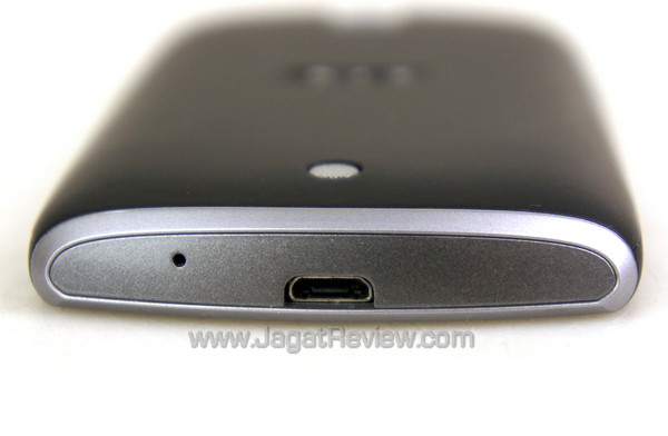 Pada bagian bawah terdapat microphone dan micro-B USB port.