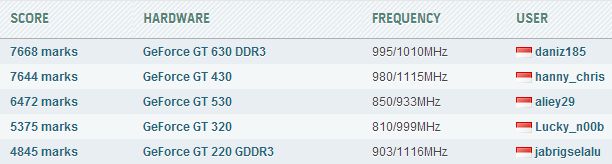 - Hanny_chris dengan skor P7644 untuk GeForce GT 430