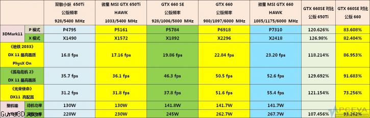 Hasil benchmark sementara GeForce GTX 660 SE ternyata menunjukkan hasil yang mengesankan. Pada benchmark 3DMark 11, graphics card ini menghasilkan skor P5784 dan X1892. Skor P5784 menghasilkan GPU Score sebesar 5520 dimana GPU skor ini bersaing ketat dengan GPU Score GTX 570 sebesar 5501 pada pengujian graphics card milik kami. Secara keseluruhan, benchmark tersebut memperlihatkan GTX 660 SE lebih kencang sekitar 20-25% di atas GTX 650 Ti dan 10-15% di bawah GTX 660.
