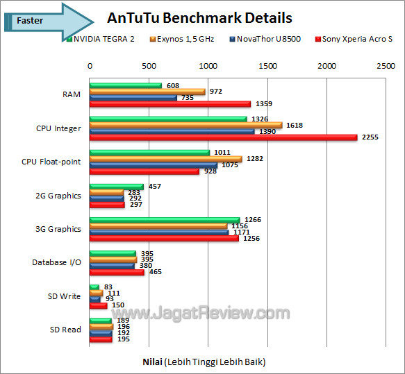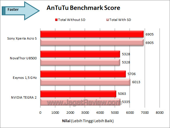 AnTuTu Benchmark merupakan sebuah benchmark suite yang menguji RAM, CPU, GPU, dan Storage yang ada, termasuk SD Card bawaan. Perhitungan total nilainya cukup mudah, yaitu dengan menjumlahkan nilai perolehan dari tiap detail. Karena tidak semua smartphone Android memberikan SD Card sebagai bonus perlengkapan, kami menghadirkan dua nilai akhir yang dapat Anda jadikan patokan.