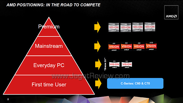 Menurut Bapak Victor Herlianto, meningkatnya market share tidak lepas dari semakin beragamnya pilihan PC AMD berbasiskan prosesor AMD APU terutama di perangkat notebook. Notebook berbasiskan prosesor AMD APU kini memiliki beragam pilihan dari kelas entry-level hingga kelas premium atau high-end. Di kelas entry-level dihuni notebook dengan prosesor AMD C-series dengan kisaran harga di bawah 3 juta rupiah. Sedangkan di kelas high-end saat ini tersedia notebook gaming dengan prosesor AMD APU A-10 seperti dari MSI. Beragam pilihan prosesor AMD APU untuk notebook juga didukung oleh semakin beragamnya pilihan merek terutama dari produsen besar notebook.