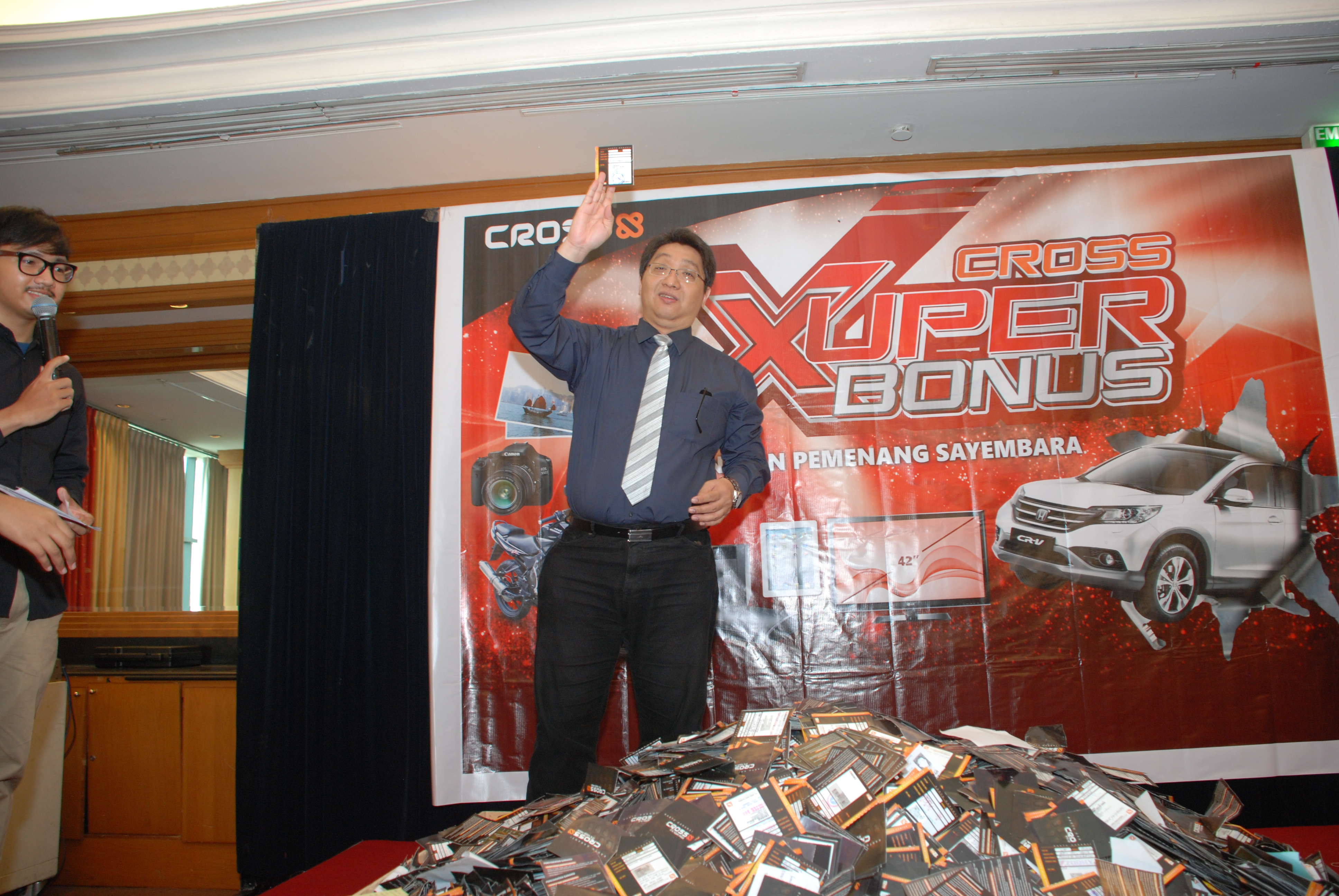 Selasa, 12 Februari kemarin, Cross Mobilephone menggelar undian pemenang CROSS XUPER BONUS. Program undian ini sudah berjalan semenjak 27 Oktober 2012 lalu sampai dengan 27 Januari 2013, setiap pelanggan yang membeli handphone Cross tipe apa saja berhak untuk mendapatkan peluang hadiah Xuper Bonus ini, dengan hadiah utama sebuah mobil mewah All New CRV.