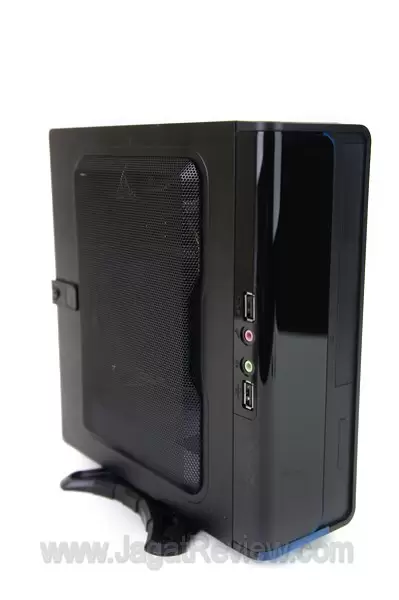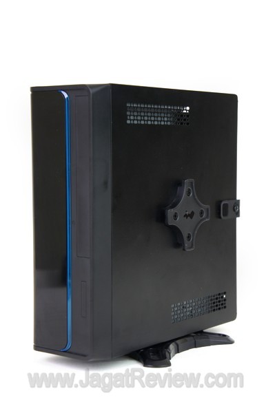 Pada sisi samping, In Win memberikan opsi untuk menempatkan sebuah stand, yang juga bisa digunakan sebagai mounting kit , digunakan misalnya untuk menaruh casing ini pada bagian belakang LCD yang memiliki VESA mount.