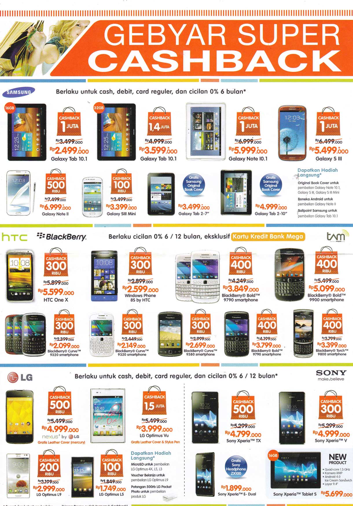 - Sony Xperia V: Rp 4.999.000,- (25 pembeli pertama)