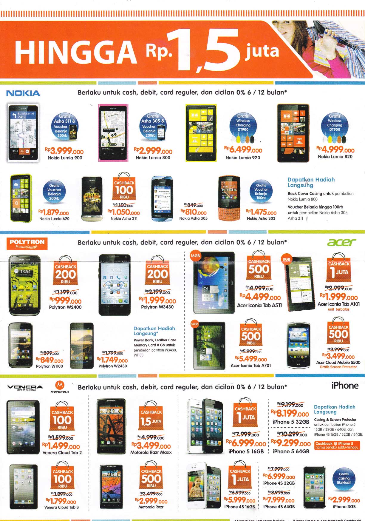 - Nokia Lumia 510: Rp 1.799.000,- menjadi Rp 1.299.000,-