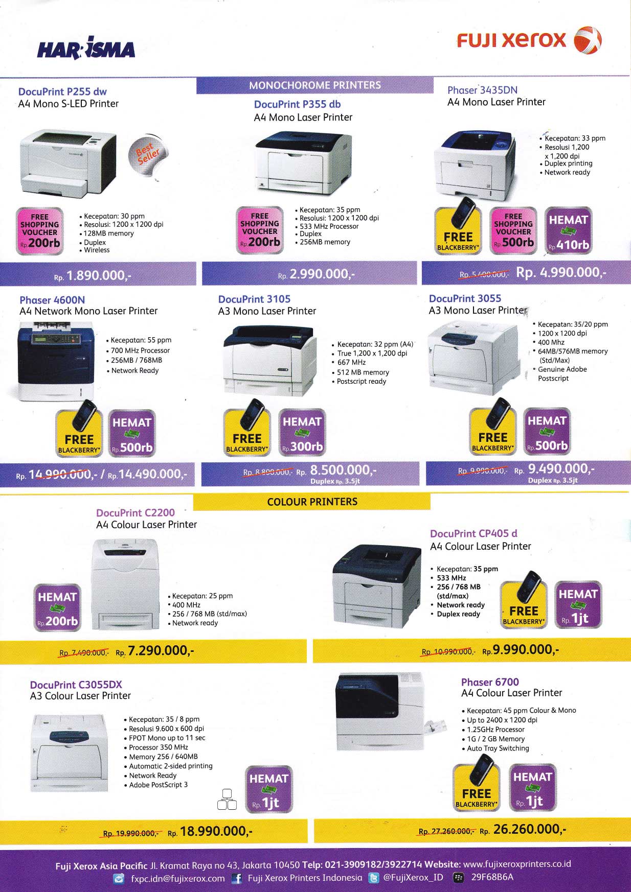 - DocuPrint CP405d: Rp 10.990.000,- menjadi Rp 9.990.000,-