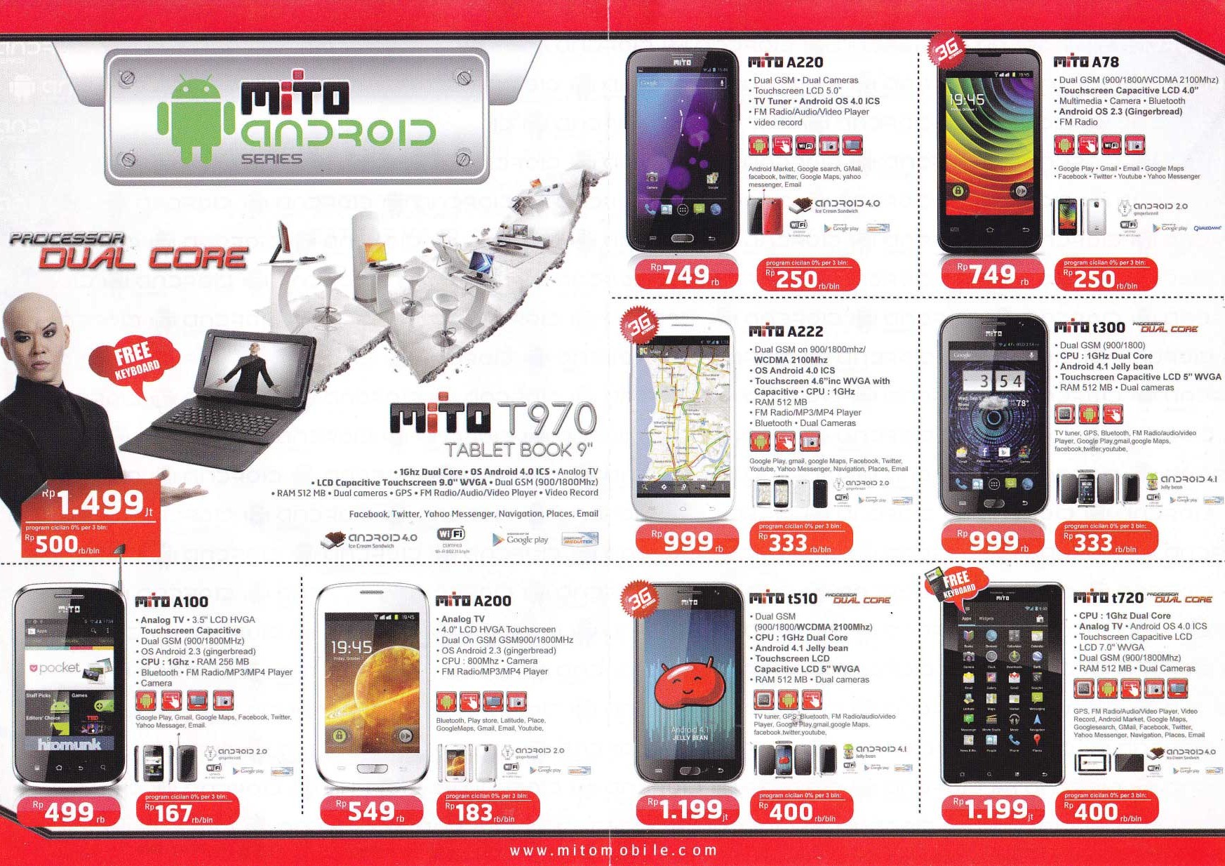 - Mito t720: Rp 1.199.000,-