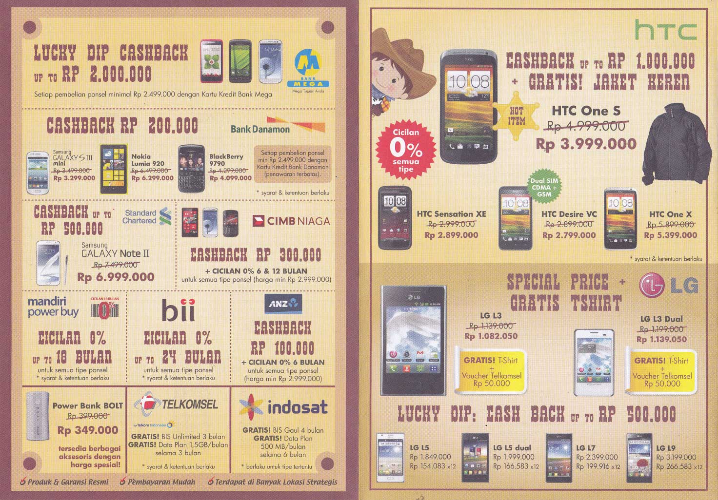 - HTC One S: Rp 4.999.000,- menjadi Rp 3.999.000,-