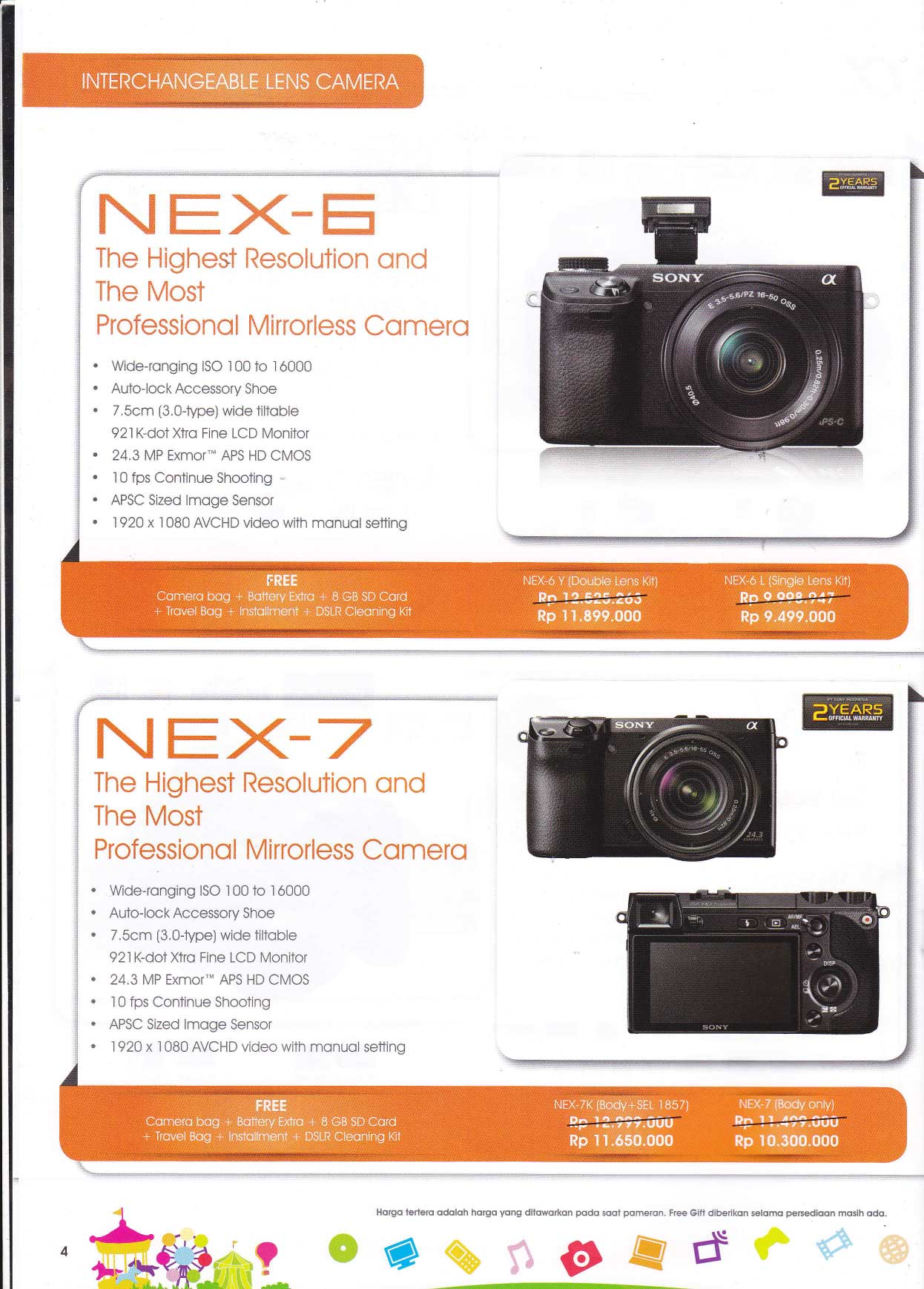 Nex-7 (Body only): Rp 11.499.000,- menjadi Rp 10.300.000,-