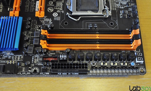 Sesuai dengan namanya, motherboard ini memang terlihat sudah disiapkan untuk menghadapi berbagai ‘siksaan’ kejam para extreme overclocker. Yang mencolok disini adalah banyaknya voltage check point yang diberikan, serta berbagai DIP-switch (LN2 mode?) dan juga onboard button yang tersedia (kemungkinan besar untuk pengaturan OC secara real-time).