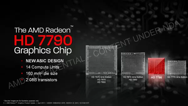 Radeon HD 7790 diotaki chip GPU terbaru bernama Bonaire. Seperti chip GPU Southern Island lainnya, Bonaire juga diproduksi dengan proses fabrikasi 28 nm dengan jumlah transistor 2,08 milyar. Jumlah transistor dan proses fabrikasi tersebut membuat chip GPU Bonaire hanya memiliki luas sebesar 160 mm2.