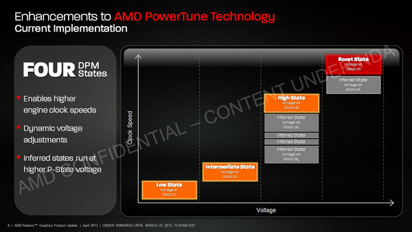 Pada PowerTune generasi dua AMD juga meningkatkan jumlah DPM States dari 4 menjadi 8. Peningkatan jumlah DPM States membuat graphics card dapat bekerja pada clock dan voltase lebih akurat, sesuai dengan beban kerja graphics card. Perpindahan antar DPM States sendiri dipengaruhi oleh aktifitas graphics card, nilai atas TDC, dan besar TDP graphics card. Sedangkan untuk berpindah antar DPM States hanya dibutuhkan waktu sekitar 10 miliseconds.