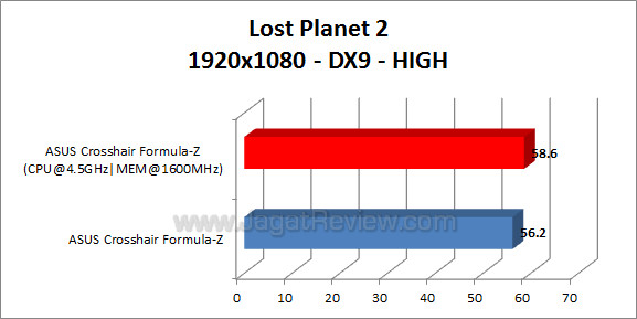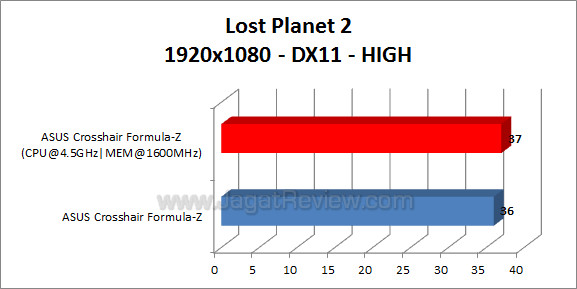 Lost Planet 2 adalah salah satu game 3rd person action yang cukup populer di pasaran. Maka dari itu kami menggunakan game ini sebagai salah satu barometer performa bagi pengujian hardware. Pengujian kami lakukan di mode DirectX 9.0 dan DirectX 11.0 menggunakan benchmark internal dari game ini sendiri.