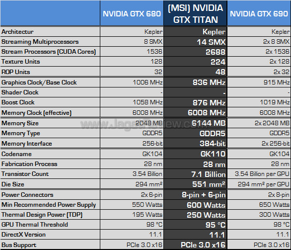 GeForce GTX TITAN dengan 2688 CUDA Cores dilengkapi 224 Texture Unit dan 48 ROP Units. Dari segi jumlah CUDA Cores, Texture Unit, dan ROP Units, GeForce GTX TITAN masih berada di bawah GTX 690. Apakah hal ini menandakan performa graphics card ini berada di antara GTX 680 dan GTX 690?
