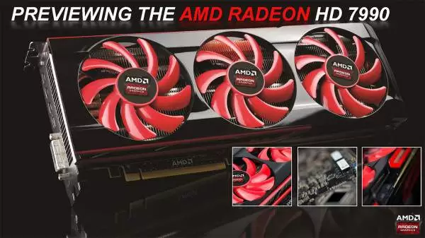 Melihat deretan foto di halaman lelang tersebut terlihat bentuk fisik Radeon HD 7990 tidak berbeda dibandingkan gambar sebelumnya yang telah beredar di dunia maya. Sistem pendingin Radeon HD 7990 tetap mengandalkan 3 buah kipas untuk mendinginkan 2 unit heatsink di bawahnya. Setiap chip GPU dilengkapi sebuah heatsink dengan 4 buah heatpipe tembaga. Radeon HD 7990 ternyata dilengkapi komponen backplate untuk mendinginkan komponen di sisi belakang PCB.