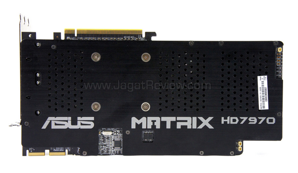 ASUS Matrix HD 7970 Platium hadir dengan desain PCB non-reference dan sistem pendingin andalan produsen ini bernama DirectCU II. Graphics card ini hadir dalam ukuran 284,48 (p) x 139,7 (l) x 63,5 (t) mm dengan desain triple-slot cooling. Dengan ukuran seperti itu, pastikan casing komputer memiliki ruang cukup luas dan bersiaplah untuk mengorbankan 2 buah slot ekspansi pada motherboard.