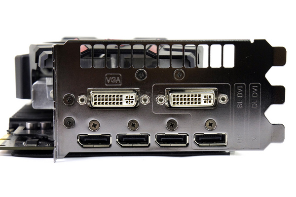 Jika Anda akan menggunakan monitor analog pada graphics card ini, pastikan Anda memasang konverter DVI to D-Sub pada konektor DVI dengan tulisan VGA di atasnya. Selain itu, posisi switch Dual BIOS juga mempengaruhi konektor display yang dapat digunakan. Konfigurasi pertama akan mengaktifkan DVI-I Dual-Link dan DVI-I Single-Link beserta sebagian konektor Display Port. Sedangkan konfigurasi kedua akan mengaktifkan 2 buah DVI-I Single-Link dengan seluruh konektor Display Port aktif.