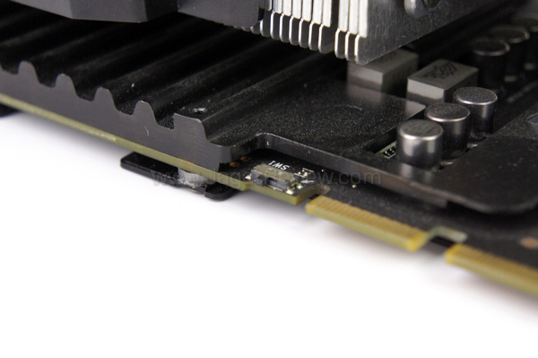 Tepat disamping konektor Crossfire terdapat switch Dual BIOS untuk berpindah antar BIOS utama dan BIOS cadangan.