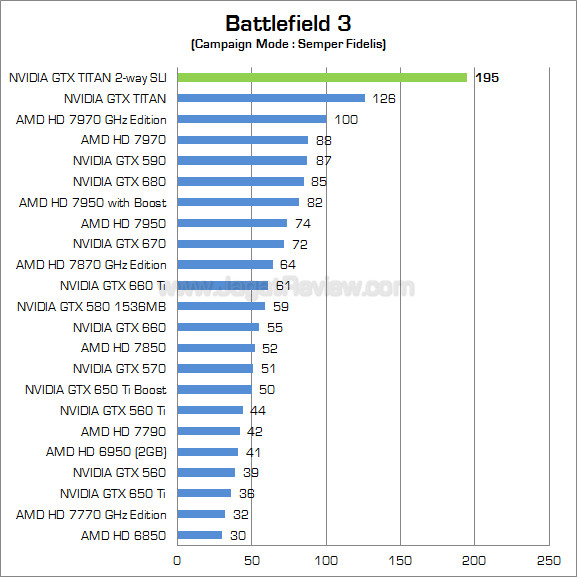 Game FPS pesaing seri Call Of Duty ini terlihat mampu berlari sekitar 54% lebih kencang saat beralih dari GeForce GTX TITAN single-GPU ke konfigurasi multi-GPU 2-way SLI.