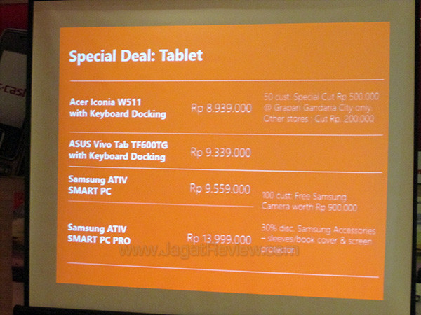 Di bawah ini adalah promo yang diberikan untuk masyarakat jika membeli perangkat tablet dan smartphone di Windows 8 Corner baik di GraPARI Telkomsel ataupun outlet erafone.