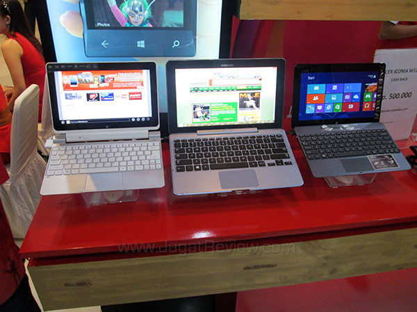 Di Windows 8 Corner kami jumpai beberapa perangkat tablet Windows 8 dan juga smartphone Windows Phone 8. Untuk tablet tipe yang kami jumpai adalah Acer Iconia W511, Samsung ATIV SmartPC, dan ASUS VivoTab TF600TG. Sedangkan untuk smartphone Windows Phone 8 kami jumpai merek Nokia dan HTC. Semoga saja di masa mendatang pilihan merek tablet dan smartphone tersebut akan semakin beragam.