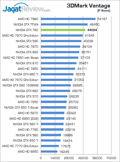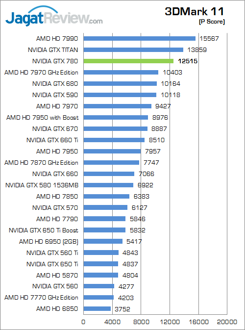 Pada banchmark sintesis DircetX 11 ini, GeForce GTX 780 unggul sekitar 25% di atas GeForce GTX 680 tetapi tertinggal sekitar 13% dibelakang GeForce GTX TITAN.