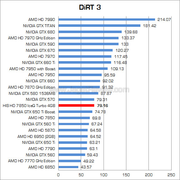 Game rally ini mendapatkan frame rate 13% lebih tinggi saat dijalankan pada HIS 7850 iPower IceQ Turbo 4GB dibandingkan HD 7850 reference.